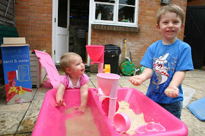 They both REALLY enjoyed playing with the sand and water table from Nanny and Grandad. I think we're all going to have alot of fun with this!!