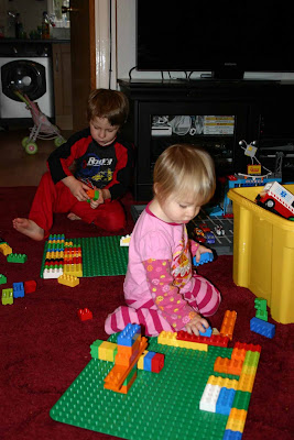 Our master lego builders at work ... definitely following in their Daddy's footsteps ...